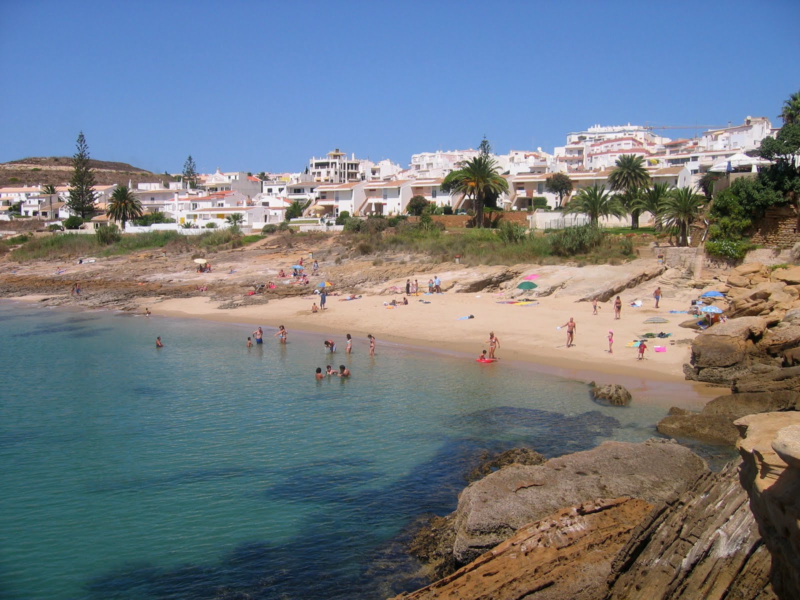 Hoje estou um pouco desanimada, não sei porquê, creio que é puro cansaço. Já não tenho idade para tanta aventura e a água gelada - 18º - dá-me cabo dos ossos, daí, sentir permanente dor nas articulações. Parece que cada dia a água arrefece mais, os ingleses estão todos alapardados na areia e nas rochas, comentando que a água aqui é quase tão fria como nas terras de Sua Majestade.