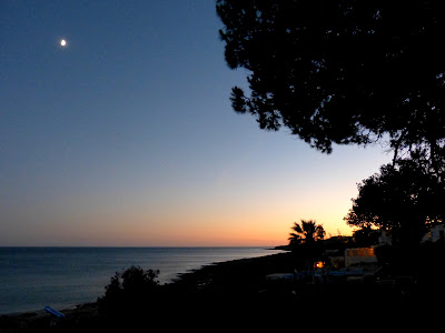A lua já brilhava alto no céu a prometer noites de luar no mar , que aqui duram quase duas semanas. Fotografei-a.